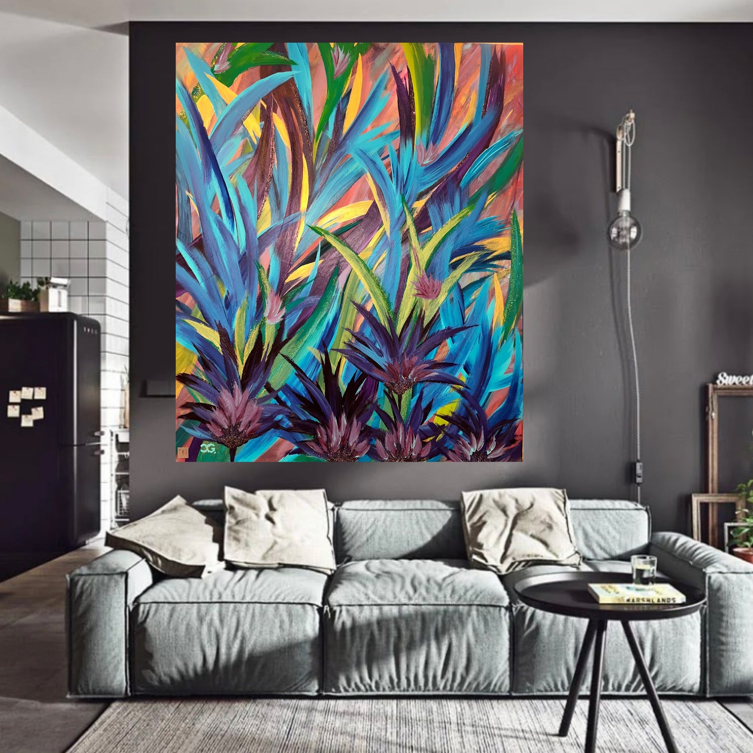 Festményem alapjának, hátterének elkészítését is nagyon fontosnak tartom, törekszem arra, hogy önmagában is értéket képviseljen. Vonalvezetésem határozott dinamikájú. Szeretem a színeket, ugyanakkor az egyszerűség tisztasága is magával ragad. Becsalogatom a fényt a vászonra, így lesznek még impulzívabbak akryllal készült absztrakt alkotásaim.